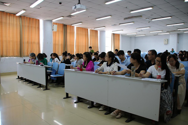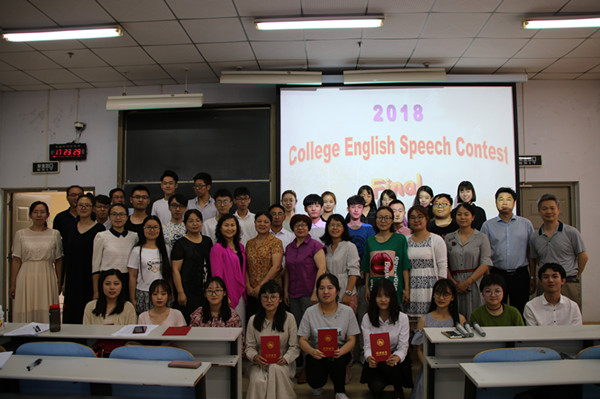 6月21日下午,我校2017级大学生英语演讲比赛决赛在东风校区教三楼100教室隆重举行。本次演讲比赛由外国语学院主办,大学英语第一教学部承办。教务处阮世敏副处长、外国语学院周麦成副院长以及大学英语第一教学部全体教师出席了本次比赛。普丰广老师负责分数统计, 李亚、翟文婧和杜婷负责现场提问,吴智慧、徐亚丽等10位老师担任评委,余爱菊副教授对本次比赛作了专业点评。