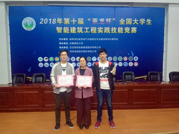 我校建筑电气与智能化专业教师任静、刘玉雪带领2015级学生刘文立、王德臣组成的参赛团队与其他41所高校学子同台竞技,经过激烈角逐,继去年之后,再次荣获团体一等奖。