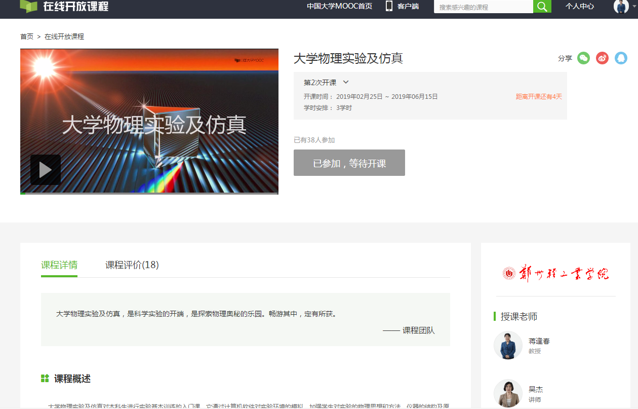 《大学物理仿真实验》课程没有选上的同学,可以注册登录爱课程网(注册方法见附件“学生注册与选课指南”,昵称请用真实姓名+班级),点击郑州轻工业学院在线开放课程《大学物理实验及仿真》课程,即可选课,参与学习;对于在爱课程上学习《大学物理实验及仿真》成绩及格者,将会把该成绩认定为《大学物理仿真实验》成绩,并获得相应学分。
