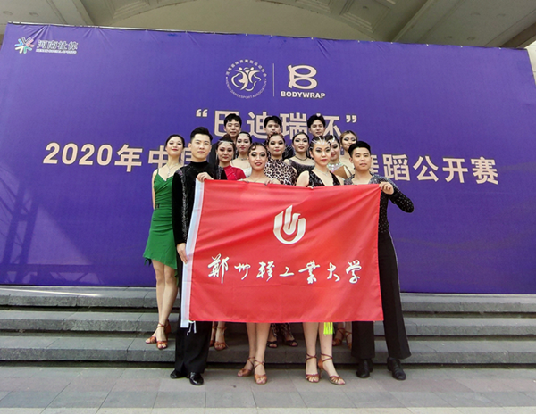 历时三天的“中国·河南体育舞蹈公开赛”于11月1日晚在恒大悦天下运动中心落下帷幕。本赛事是检验河南省高校体育舞蹈项目的开展、普及情况和舞蹈教学水平的重要标准之一。省内多所舞蹈专业院校派队参赛,我校艺术教育中心以王才东主任为领队、王靖老师为教练,带领14名同学组队参加了大学生组单人、双人舞五个项目的比赛。经过两天紧张比赛,最终进入决赛的我校选手,分别获得了不同组别的冠亚军的好成绩。
