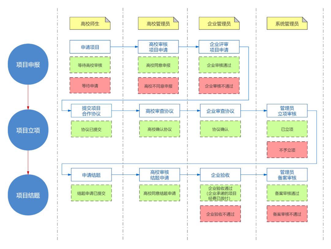 5.项目申报后,请及时关注高校和企业审核进展。企业审核通过的项目,高校与企业应签署合作协议,明确项目内容、资助形式及时间、预期成果、项目周期和验收标准等事项。合作协议由高校与企业签署,协议盖章必须为高校、企业公章(或合同章)。推荐使用项目提供的合作协议模板,协议模板未尽事项,双方可签订补充协议。如另行拟定合作协议,须涵盖协议模板所列主要内容。合作协议由项目负责人上传至项目平台,并须经企业确认。请及时关注协议确认进度,以免影响项目立项。