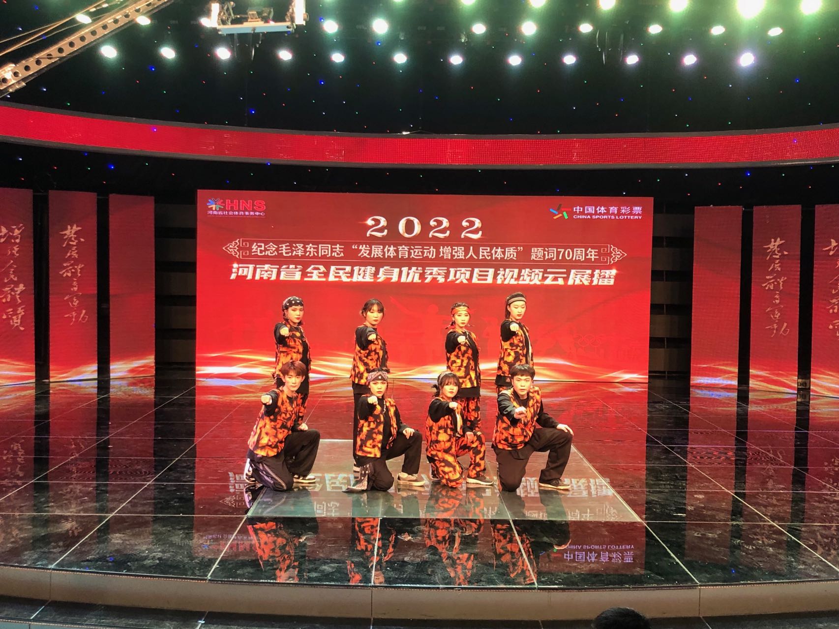 为纪念毛泽东同志题词“发展体育运动 增强人民体质”70周年,近日河南省社会体育事务中心组织开展“2022河南省全民健身优秀项目视频云展播活动”,我校舞蹈节目“多彩轻大”受邀参加。艺术教育中心教师王靖带领8名学生参加活动。