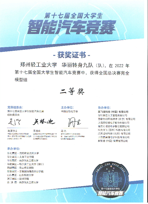 在河南分区赛中,我校共派出6支队伍参赛,6支队伍均获奖,其中赛区二等奖5项、三等奖1项。全国大学生智能汽车竞赛由教育部高等学校自动化类专业教学指导委员会创办,并被教育部批准列入国家教学质量与教学改革工程资助项目,是一项以“立足培养、重在参与、鼓励探索、追求卓越”为指导思想,以智能汽车为研究对象的创意性科技竞赛,是面向全国大学生的一种具有探索性工程实践活动,竞赛内容综合性强,涵盖了控制、模式识别、传感技术、电子、电气、计算机、机械、通信、汽车工程等多个学科知识。