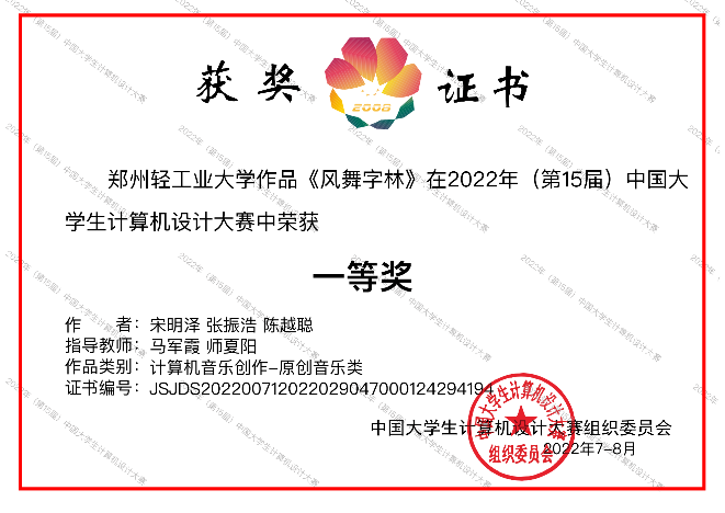 1 | 风舞字林 | 宋明泽、陈越聪、张振浩 | 全国一等奖 | 马军霞、师夏阳 |