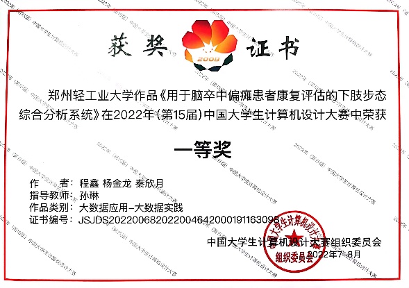 3 | 用于脑卒中偏瘫患者康复评估的下肢步态综合分析系统 | 程鑫、杨金龙、秦欣月 | 全国一等奖 | 孙琳 |