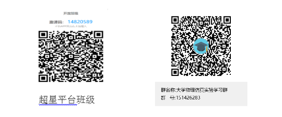 《大学物理实验及仿真》课程学习方式为在线学习,第三周周二晚上在中国大学MOOC开始直播授课,请同学们在开课前扫码加入超星平台班级和QQ学习群,做好上课准备。